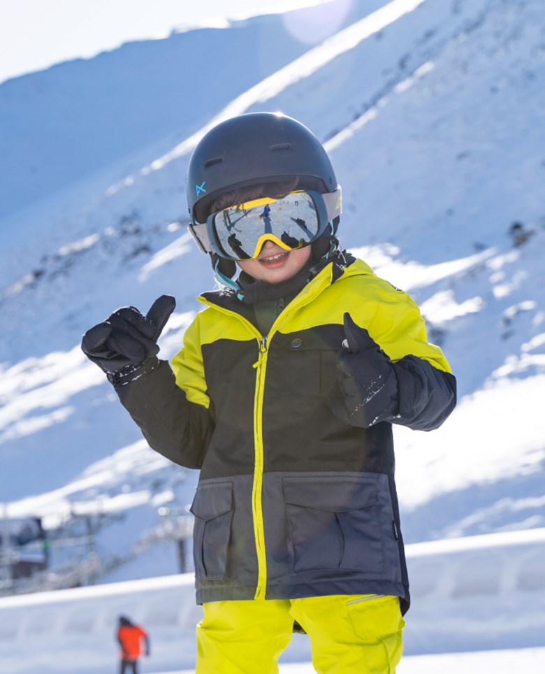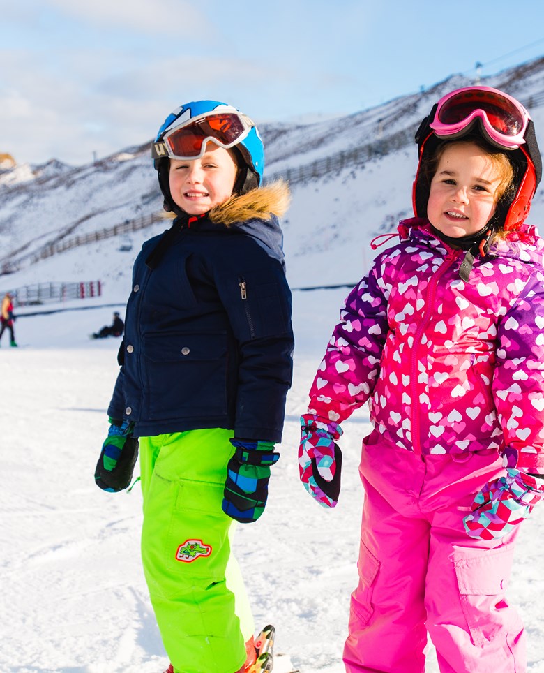 Spare mittens can be a lifesaver for little hands. Even if it’s a bluebird day, mittens can get wet from the snow. Change mittens for a fresh pair at lunchtime to keep the afternoon comfort levels high. You can also purchase spares from our Retail Shop on the mountain. For snacks, fill your ski jacket with high-energy muesli or choccy bars that are easy to eat with mittens on.
